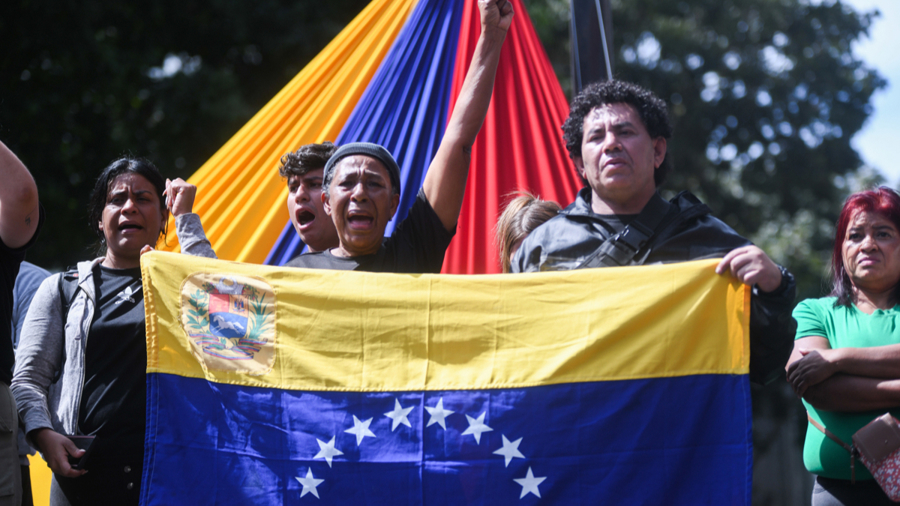 1月3日,在委内瑞拉首都加拉加斯,民众在米拉弗洛雷斯宫附近集会。\n 美国3日凌晨对委内瑞拉发起大规模军事行动,突袭委首都加拉加斯并抓走总统马杜罗及其妻子。美国总统特朗普当天称,美国将“管理”委内瑞拉直至实施“安全”过渡。\n 新华社发