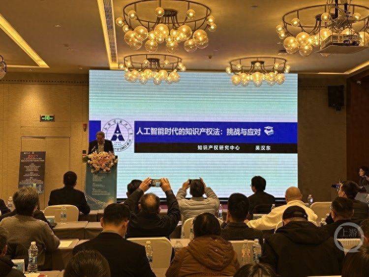 吴汉东以“人工智能时代的知识产权法:挑战与应对”为主题演讲。 上游新闻记者 宋剑 摄